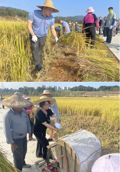 秋意漸寒,稻谷飄香為深入貫徹習近平總書記關于實施鄉村振興戰略和糧食安全的重要論述,以學促干,推動學習貫徹習近平新時代中國特色社會主義思想主題教育見行見效,2023年117上午,市政集團黨支部組織全體黨員干部龍州濕地項目開展“傳承蘇區好作風 四下基層促發展”主題黨日活動,全面助力稻谷收割工作。