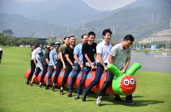 與傳統(tǒng)運動會不同,此次趣味運動會環(huán)節(jié)豐富、趣味十足、合作性強(qiáng),涵蓋了旋轉(zhuǎn)接水、毛毛蟲、跳一跳三個項目環(huán)節(jié)。所有參賽人員按隨機(jī)性破冰重組,分為四隊,每個項目都是以多人合作為比賽模式,不但考驗了參賽者的協(xié)調(diào)能力和身體素質(zhì),更考驗了團(tuán)隊合作精神。賽場上,隊員們笑容滿臉,精力充沛,全力投入,場上時時爆出掌聲和拼搏的歡呼聲,真正賽出風(fēng)采,賽出凝聚力。