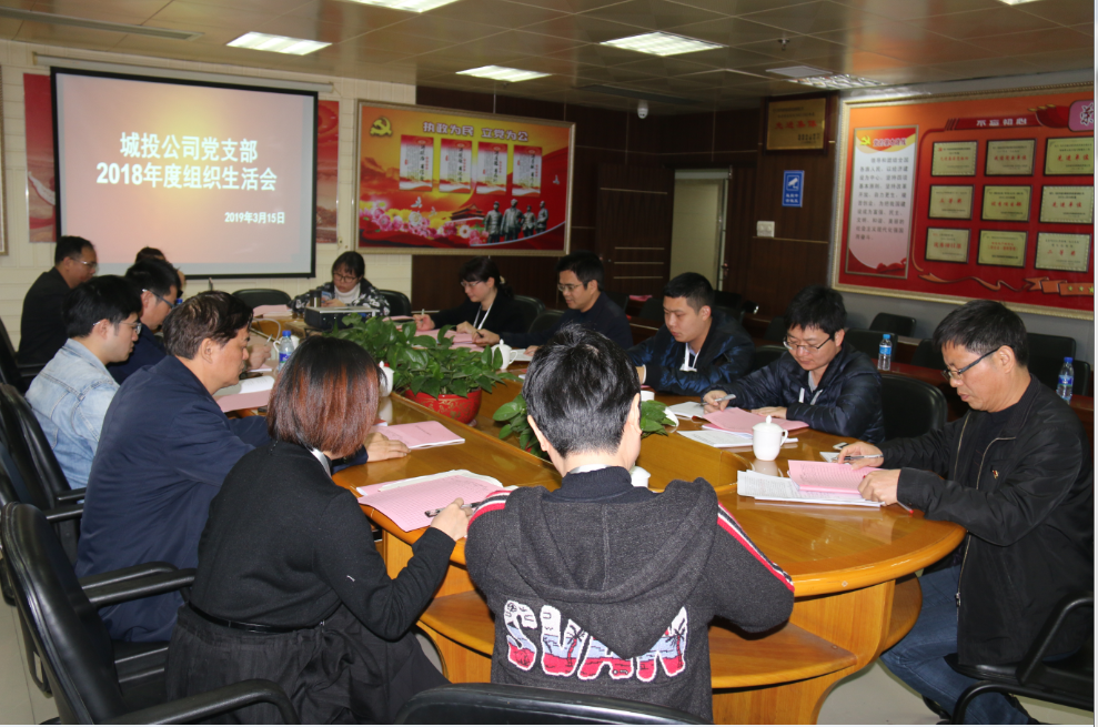 2019年3月15日上午,城投公司黨支部全體黨員在三樓會議室召開2018年度組織生活會暨民主評議黨員大會。會議由黨支部副書記藍茂瑞主持,城發集團黨委副書記陳明參加了會議。