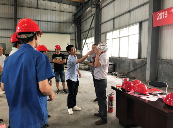 為大力弘揚“防風險、除隱患、遏事故”的思想,推進全國第18個“安全生產(chǎn)月”活動深入開展,確?;馂氖鹿拾l(fā)生時采取有效措施進行疏散及滅火,保障人員生命和財產(chǎn)的安全。公司質(zhì)安部深入公司下屬企業(yè)龍巖市天潤龍城新型建材有限公司開展消防安全宣傳活動。質(zhì)安部人員向一線工人現(xiàn)場講解對滅火器的使用步驟,講解了火災時正確使用過濾式消防自救呼吸器,展示滅火器材的使用方法及撲火過程中的注意事項以及在遇到火情時的一些應急方法,觀摩人員也進行了現(xiàn)場體驗,進一步提高了對基本滅火、逃生自救的能力。